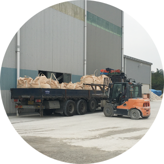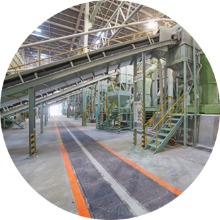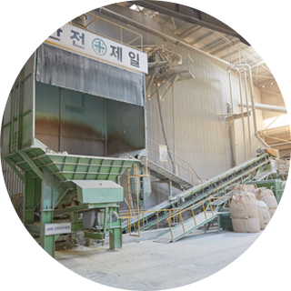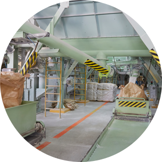 원석을 가공하고, 분급을 통하여 입도 크기별 최종 제품으로 생산하는 공정입니다.